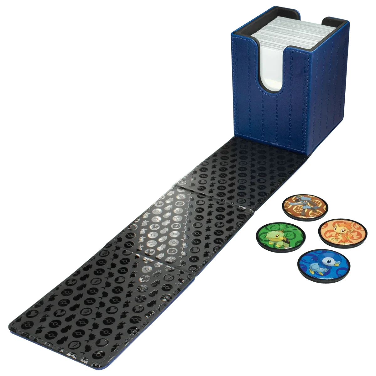 Die Alcove Click Box enthält vier thematische Buttons mit Chelast, Panflam, Plinfa und Riolu. Diese Deckbox bietet Platz für bis zu 100 Sammelkarten in Standardgröße, doppelt verpackt in Ultra PRO Deck Protector® Hüllen, verfügt über einen starken Magnetverschluss und zwei Daumenaussparungen für den einfachen Zugriff auf dein Deck.