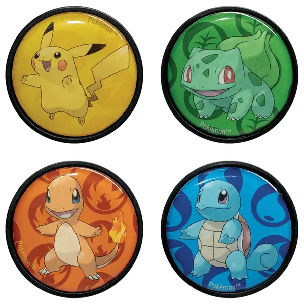 - Kommt mit vier 3,8 cm großen Magnetbuttons mit Bisasam, Schiggy, Glumanda & Pikachu